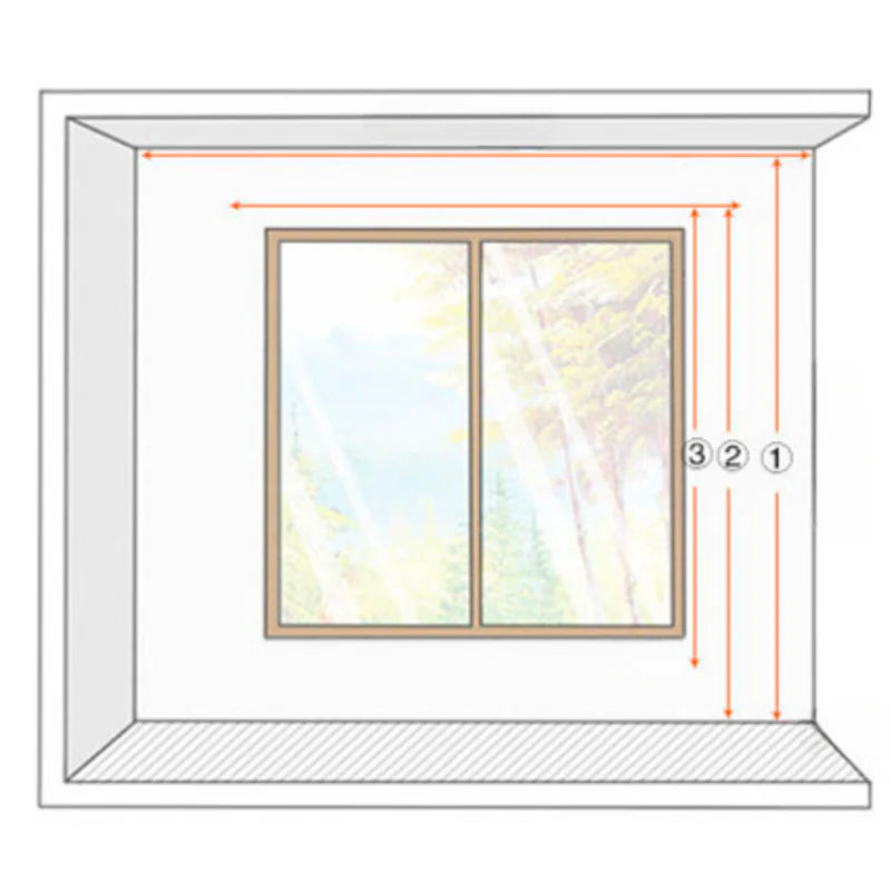 3. Partial half-waist effect: width for the window length + left and right each 9'', the height of the window height +4'' to 6'' (the upper edge of the window) +9'' (the lower edge of the window)